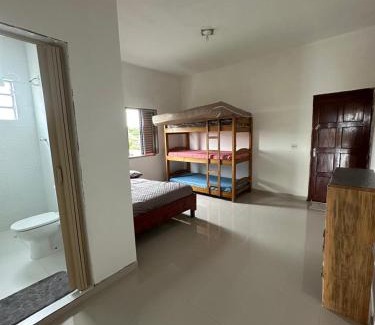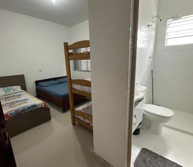 Just a 15-minute walk from Cibratel and one mile from Itanhaem Bus Station, casa na praia features accommodations in Itanhaém with a terrace. This beachfront property offers access to a balcony, free private parking, and free Wifi. The vacation home is composed of 1 bedroom, a fully equipped kitchen, and 2 bathrooms. A flat-screen TV is provided. The property offers garden views. Litoral Plaza Shopping is 30 miles from the vacation home, while Nossa Senhora da Conceicao Convent is 3.6 miles away. Sao Paulo/Congonhas Airport is 66 miles from the property.