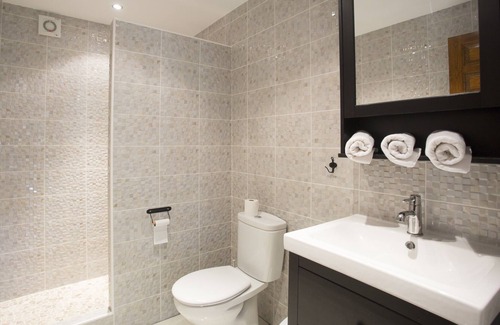 - open kitchen with electric hob, electric oven, microwave, dishwasher, refrigerator, freezer, coffee machine, electric kettle, mixer, toaster and juicer