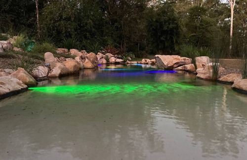 Eco-conscious and fully self-sustained with solar power and rainwater, it offers a chemical-free natural pool for a refreshing dip, stargazing by the fire, and mornings with birds & kangaroos.