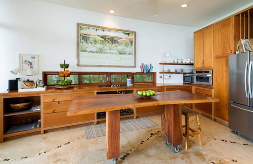 Breathtaking views from wrap-around decks of 3-story family home overlooking world-famous Playa Negra surf break (featured in Endless Summer 2). Ohana blends indoors with outdoors: rocking chairs and al fresco dining, three big decks; open living room with high ceilings, 5-foot wide glass doors, huge window walls; handcrafted kitchen with professional appliances, outdoor grill; main bedroom with 180-degree ocean views, 3 other ocean-view bedrooms, one mountain-view bedroom; all bedrooms with AC; 40-foot lap pool surrounded by plumeria trees, lush landscaping, sun-tanning deck, outdoor lanai with hammocks, built-in couches, ping-pong table and outdoor bar. Short walk to great swimming, boogie boarding, surfing; 85-degree water; mermaid ponds nearby. Howler monkeys, occasional sloths, abundant birdlife, alluring sunrises, spectacular cocktail sunsets; high-speed internet services, Sonos sound system; good restaurants within walking distance of the house, and several great restaurants only two miles away by car.