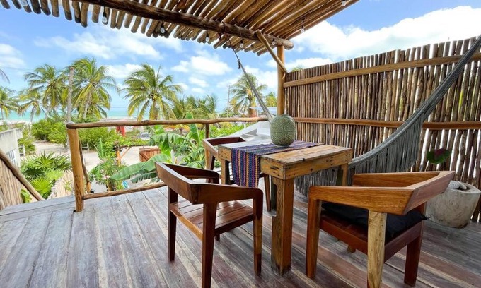 Featuring a garden, the property is located within a 17-minute walk of Cocal Beach. Free Wifi is available throughout the property and Playa El Cuyo is a few steps away. Offering direct access to a terrace with sea views, the air-conditioned apartment consists of 1 bedroom and a fully equipped kitchen. Towels and bed linen are available in the apartment. The property has an outdoor dining area. Cancún International Airport is 99 miles from the property.