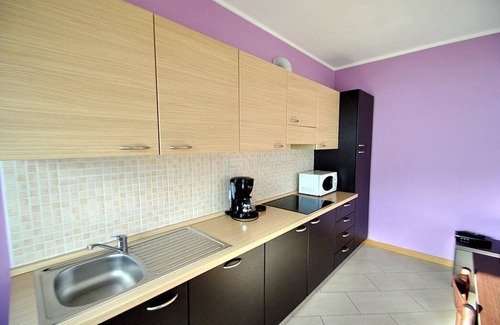 The swimming pool is 3 meters (10 feet) large by 7 meters (23 feet) long, 1.4 meters (4.6 feet) deep. The area is equipped with a table, chairs, sun umbrellas, deck chairs, sun loungers and an external shower. From the swimming pool you will enjoy a gorgeous view of the lake. You will share the pool with the other guests staying at the complex. The swimming pool is open from the beginning of May until the end of September.