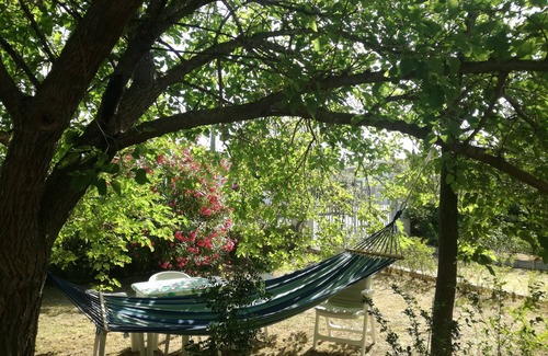 The house is based on the ground floor, and it comprises a large open-plan and fully-equipped kitchen with fridge, freezer, microwave, kettle, mixer, and oven; a spacious living room with armchairs, sofa, TV, fireplace and cupboards; two fully-furnished double bedrooms (one of which with the possibility of separating/putting together the single beds); one bathroom with a cabin shower, bidet and a brand-new washing machine; a patio with wooden table and chairs; a large garden with flowerbeds, amaca, BBQ, table and chairs, and private car park under the trees. Windows have mosquitos' nets.