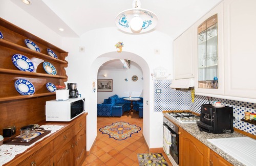 The living room is paved with handmade tiles, in the characteristic style of the Amalfi Coast. The furnishings are elegant and welcoming. The furnishings includes two sofas. The dining table can accommodate three guests. In this room you will find satellite TV Sky TV - 3D TV - Netflix TV and movies on demand DVD player and a CD player. The room has two porthole windows. It is equipped with an air conditioning / heating unit.