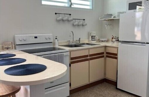 Enjoy the simplicity of this quiet and central accommodation that is a 5 minutes from beautiful Crashboat beach. This cozy house include three bedrooms. One bedroom with full bed, second bedroom with queen bed and third bedroom with bunk bed with full mattresses. Accommodates six people comfortably. We have a nice backyard with jacuzzi , BBQ, hammock, outdoor shower to enjoy after the adventure. A/C in each bedrooms and living area. We are 5 minutes from the most beautiful beaches,10 minutes from the airport, golf course, supermarkets, restaurants and pharmacies. Private parking for two cars . If you come to work, one of the rooms includes a desk and we have high-speed Wi-Fi.