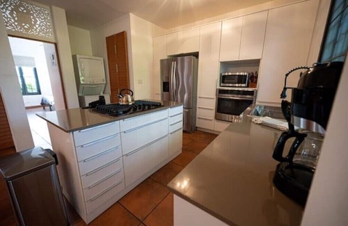 This home is a 3 bedroom 3 bath tropical paradise on almost a full acre of beautiful lush landscape that is completely gated in. The yard has several different fruit trees including mango, breadfruit (pana), dragon fruit, tamarindo and coconut trees as well as many plumerias and hibiscus. There are hammocks on the patio, a large grill for cooking and a fire pit in the yard.
