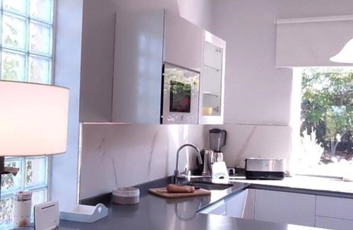 You can enjoy a bookstore for your moments of leisure. The living room is equipped with a Smart TV, where you can surf the internet, Netflix, Disney, YouTube, Spotify with HIFI sound amplifier, you have Wi-Fi, board games, a wood stove that gives great warmth to the room.