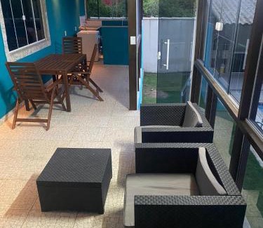 Providing a bar, Casa Rasa provides accommodations in Búzios. This property offers access to a balcony, free private parking, and free Wifi. The accommodation features a 24-hour front desk and full-day security for guests. Featuring a terrace and quiet street views, the spacious vacation home includes 3 bedrooms, a living room, flat-screen TV, an equipped kitchen, and 2 bathrooms with a shower. The property has an outdoor dining area. Guests can enjoy the outdoor swimming pool and garden at the vacation home. Praia da Gorda is 1.3 miles from Casa Rasa, while Buzios Marina is 2.6 miles from the property. Cabo Frio International Airport is 17 miles away.