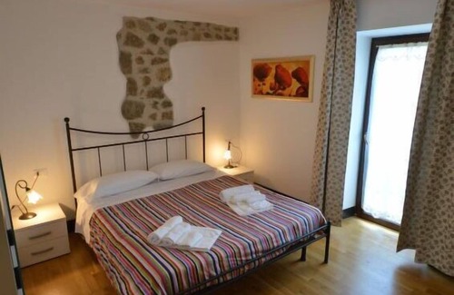 "Rasat di Sora", 2-room apartment 50 m2 on 1st floor. Bright, beautiful and tasteful furnishings: living/sleeping room with 1 double sofabed, dining table and TV. Exit to the balcony. 1 double bedroom. Exit to the balcony. Open kitchen (oven, 2 induction hot plates, kettle, microwave, electric coffee machine). Shower/bidet/WC. Gas heating. Parquet floors. 2 small balconies. Facilities: baby cot. Internet (WiFi, free). Reserved parking (1 car) at the house. Please note: non-smoking house, parking space for small car only. Maximum 2 pets/ dogs allowed. No mandatory extra charges to be paid on-site. Bedlinen, towels, final cleaning and all energy costs are included.