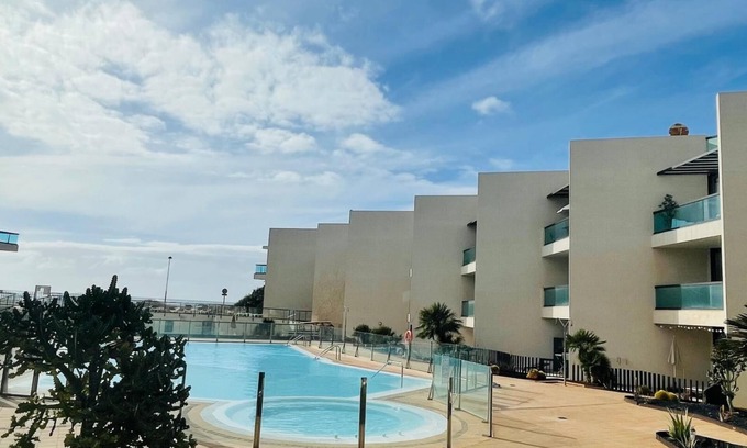 Newly renovated apartment! Nice fully and modernly equipped apartment located near the beautiful beaches of the fishing village of El Cotillo; suitable for 2 people, it consists of a living area with fully equipped kitchen (kettle, coffee machine, microwave) table with chairs, comfortable 2-seater sofa that converts into a French bed and large flat-screen SMART-TV. The bedroom has a double bed, the bathroom is renovated with a large shower and hairdryer. The apartment is very bright and is located within a small quiet and well-kept complex with an amizing pool an excellent starting point for reaching bars, restaurants and beaches. Close to the local bus station.