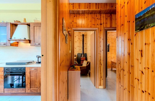 4-room house 90 m2 on 2 levels. Bright, simple and comfortable furnishings: entrance hall. Living room with 1 double sofabed, TV and wood-burning stove. 1 double bedroom. 1 room with 2 beds. Kitchen (oven, 4 gas rings, toaster, kettle, pizza oven) with dining table, TV and wood-burning stove. Exit to the balcony. Shower/bidet/WC. Wood heating, boiler (30 litres). Heating not available in all rooms. On the lower ground floor: (exterior staircase) dining room with dining table. Exit to the garden. Small terrace, garden. Deck chairs (6). Panoramic view of the mountains, the valley and the garden. Facilities: hair dryer, logs (free). Please note: non-smoking house. Maximum 1 pet/ dog allowed. Private entrance. IT014022C2NLE6M2CR