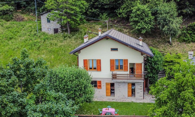Small, comfortable single-family house "Casa Rita", 1'075 m a.s.l 2 storeys, detached, surrounded by trees and meadows. In the hamlet Poira 5 km from the centre of Civo, in a secluded, quiet, sunny position on a slope, along the wooded area, south facing position. Private: well-kept terraced garden (not fenced) with lawn and trees, meadow, lawn for sunbathing. Terrace, garden furniture, barbecue, fireplace. In the house: storage room for bicycles, storage room for skis. Motor access to 300 m from the house. 300 m steep footpath to the house. Public parking 300 m on the road. Supermarket 5 km, restaurant 2 km, bar 2 km. Nearby attractions: Morbegno 14 km, Riserva Naturale Val di Mello 18 km, Fly Emotion (Zipline) 24 km, Ponte Tibetano Ponte nel Cielo 28 km, Sondrio 35 km, Train Bernina Express: Tirano-St Moritz 60 km. Well-known lakes can easily be reached: Lago di Como 28 km. Hiking paths: Bagni di Masino, Lago San Martino, Lago di Scermendone, Monte Belinghera, Sentiero Valtellina. Please note: car recommended.
