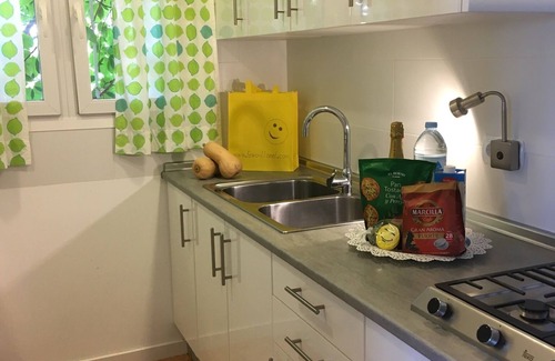 IMPORTANT! The booking calendar is not updated, please make sure to enquire before making a firm booking! Pets allowed. The renovated main flat of our "Casa Roca Grossa Blanca" consists of a spacious 24 m² living/dining room, 2 bedrooms (double bed, 2 single beds), bathroom with large shower (115 x 80 cm), fully equipped kitchen (gas cooker, fridge/freezer, microwave, washing machine, dishwasher, Senseo coffee machine) and balcony. A breakfast terrace with morning sun is in front of the entrance, balcony with sea view on the other side. Children's swing and sandpit in the garden.