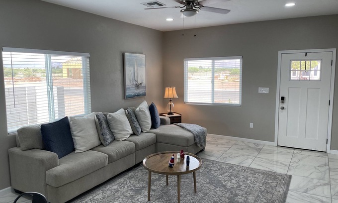 Immaculate house, gated community, on golf course, next to county fairgrounds. Three bedroom, two bath home, two car garage, fully furnished, pet friendly in a quiet community. Experience beautiful sunsets.