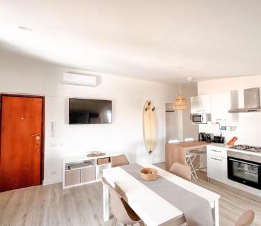 Casa Romeo - Sea View Apartment is located in Focene, just 18 miles from EUR Fermi Metro Station and 19 miles from Basilica San Paolo Metro Station. This recently renovated apartment is located 17 miles from EUR Magliana Metro Station and 18 miles from PalaLottomatica Arena. Free Wifi is available throughout the property and Focene Beach is a few steps away. Offering a balcony and sea views, the spacious apartment includes 2 bedrooms, a living room, flat-screen TV, an equipped kitchen, and 1 bathroom with a bidet and a shower. Towels and bed linen are featured in the apartment. The property has an outdoor dining area. Roma Trastevere Train Station is 19 miles from the apartment, while Laurentina Metro Station is 19 miles away. Fiumicino Airport is 0.6 miles from the property.
