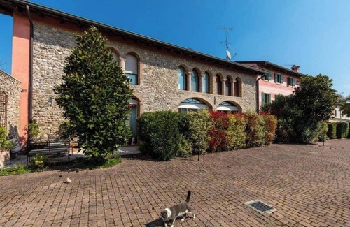 Residence 'Corte Campedella' is a beautiful, prestigious gated complexlocated amongst the vineyards in Bande, Cavriana, on one of the 10 food and wine roads of Lombardy: 'La Strada dei Vini e Sapori Mantovani' and hence a paradise for lovers of Italian food and wine. The condominium consists of 12 privately owned apartments in the peaceful Morainic hills just a 15-minute drive from Sirmione or Desenzano, on the southern shore of Lake Garda. The building was owned by the Gonzaga family from the13th-18th centuries. The property is located on the battlefields of the 1859 Battle of Solferino as a result of which, the International Red Cross was formed. Bande, Cavriana is listed as a UNESCO world heritage site.