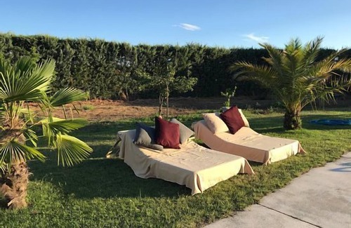 In between the Gredos mountain range and the Tietar River, the 2.5 hectares land - dedicated to pepper farming for producing La Vera paprika - accommodates a house with 6 rooms and suites - extendable to 7 rooms and suites - and 5 bathrooms, a huge garden, a 80 sq/m orchard surrounded by various fruit trees, a large swimming pool with jakuzzi, a 81 sq/m porch and a a 81 sq/m veranda with amazing views of the river valley and the mountains range and a 162 sq/m outdoors covered area equipped with a kitchen, a bbq, a clay oven, a paella cooking area and a 15m long rocket stove daybed. In our land you can access the river for kayaking and you can fish at one of the best fishing places of the Tietar River.