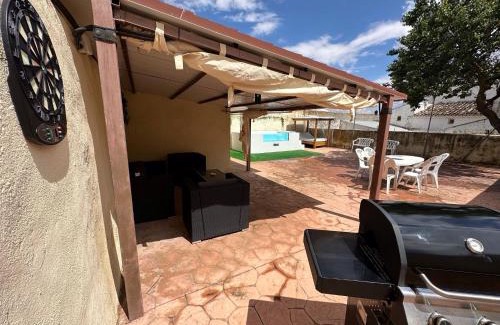 This vacation home features air-conditioned accommodations with a terrace. The vacation home provides a seasonal outdoor pool and a 24-hour front desk. This vacation home includes 6 bedrooms, a living room and a flat-screen TV, an equipped kitchen with a dining area, and 2 bathrooms with a shower and a washing machine. Towels and bed linen are offered in the vacation home. There's also a seating area and a fireplace. During warmer months, you can make use of the barbecue facilities and eat on the private patio. You can play darts at Casa rural cerca Tarancón-Cuenca. Outdoor play equipment is also available at the vacation home, while guests can also relax in the garden. Adolfo Suarez Madrid-Barajas Airport is 62 miles from the property.