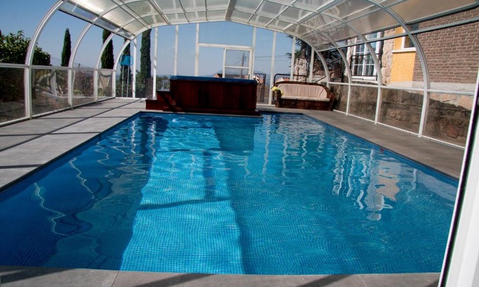 28 miles from Plaza de España Metro Station in Collado Mediano, Casa Rural Collarubio provides accommodations with access to a solarium, indoor pool, and open-air bath. With garden views, this accommodation offers a patio and a swimming pool. The accommodation features a hot tub, free Wifi throughout the property, and a tour desk. Providing access to a balcony with pool views, the spacious country house consists of 6 bedrooms. Featuring a terrace with mountain views, this country house also comes with a flat-screen TV, a well-equipped kitchen with a dishwasher, an oven, and a microwave, as well as 1 bathroom with a hot tub and a hair dryer. There's also a seating area and a fireplace. For those times when you'd rather not eat out, you can cook on the barbecue. You can play billiards, table tennis, and darts at the country house, and the area is popular for hiking. Skiing, cycling, and fishing are possible within the area, and Casa Rural Collarubio offers ski-to-door access. Temple of Debod is 28 miles from the accommodation, while Gran Via is 29 miles from the property. Adolfo Suarez Madrid-Barajas Airport is 38 miles away.