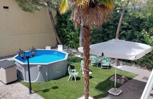 Food & DrinkTea/Coffee maker, Bottle of waterBathroomBathtub or shower, Bathtub, Bidet, Hairdryer, Shared toilet, Toilet, Private bathroom, Body soap, Towels, Toilet paper, Shampoo, ShowerMedia & TechnologyFlat-screen TV, TVGeneralFire extinguisher, Private entrance, Key access, Heating, Suit press, Mosquito net, Tile/Marble floor, Fan, Iron, Trash cansKitchenCleaning products, Kitchenware, Toaster, Oven, Coffee machine, Dining table, Microwave, Kitchen, Refrigerator, Kitchenette, Washing machineOutdoorsPrivate pool, Balcony, Outdoor furniture, Barbecue, Terrace, PatioLiving AreaDining area, Sitting areaViewGarden view, Pool view, ViewBedroomLinens, Childrens' cribs, Wardrobe or closetAccessibilityUpper floors accessible by stairs only, Hearing accessibleBuilding CharacteristicsDetachedRoom AmenitiesFeather pillow, Socket near the bed, Drying rack for clothing, Clothes rackEntertainment & Family ServicesBoard games/puzzles, Books, DVDs or music for childrenPool and SpaShallow end, Plunge Pool, Pool cover, Pool towels |