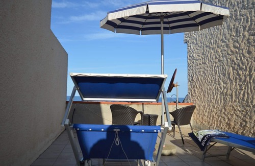 The apartment is located on the S'archittu seafront, 10 meters from the beach, in the municipality of Cuglieri, in the province of Oristano, in western Sardinia. The house is 50 sq m. , with a 50 square meter terrace equipped with two deck chairs and an umbrella, table and chairs where you can have breakfast in perfect privacy overlooking the coast, facing the sea. The location is optimal, it is in the center of the promenade a few meters from the beach and the arch, the location is perfect for sea lovers looking for privacy and tranquility. The geographical context is ideal for easy access to the western part of the island . The apartment borders on the left with a pizzeria and newsagent, on the right with a private house. At 10 meters there is a grocery store and at 100 meters there are two restaurants and a pizzeria and a lounge bar on the beach a few meters away where you can have aperitifs with the magical sunsets of western Sardinia.
