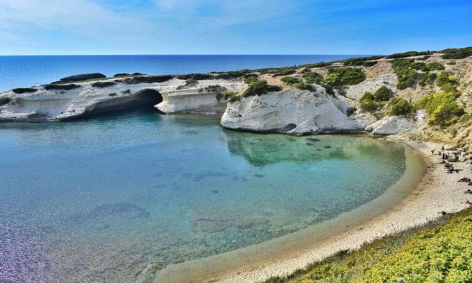 The characteristic of the ideal house for two people is the cliff of S'Archittu, a few meters from the natural arch (Archittu) Image symbol in the area, a tourist attraction for the landscape, often called the moon for its reflections on sea. A few meters from the arc and the beach there is a large car park and access for the handicapped. For its shallow water it is suitable for children. In this sea is totally absent Posidonia.