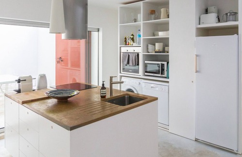 In a calm spot in the Algarve, north of Faro, surrounded by almond and olive trees, is set Casa Sabados. The unique architecture and décor of this holiday home are the work of internationally renowned architect Pedro Domingos and is featured in several architecture and interior design magazines. The concrete flooring, sharp, clean lines and a fresh approach to minimalist design contrast magnificently with the earthy, rural environment. The spacious and bright design with sophisticated décor gives a warm and welcoming vibe, while the large windows offer uninterrupted views of the surrounding hills. The three large bedrooms, two bathrooms, and living areas merge seamlessly and can accommodate six people.