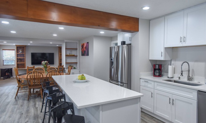 Come in and relax after an adventurous day skiing, biking, hiking, or strolling around downtown SLC. Casa Santa is a newly renovated 4-bedroom (1 King, 2 Queen, 1 Bunk-Twin/Full) oasis. Nothing kills a chill after playing in the snow like taking a long steam-shower or cuddling up close next to a fire and catching up on your favorite movie on a 75” HDTV.