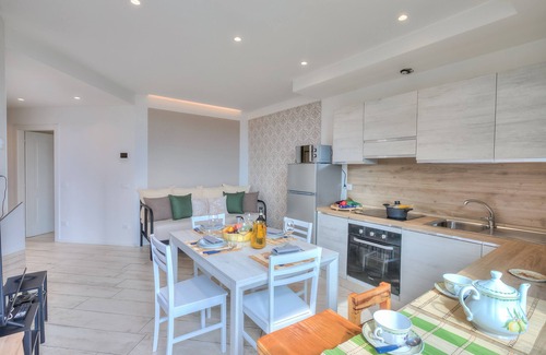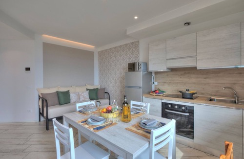 Featuring two bedrooms for 4 guests, this modern apartment with private terrace dining and delightful communal amenities like a shared pool, garden and tennis promises total relaxation on Lake Garda. Inside, the balcony apartment features a bright and vibrant living room with a large sofa, Smart TV and a dining table for everyone to join in and reconnect over food and drinks. This is complemented by a well-equipped kitchenette featuring a dishwasher, microwave, mokka coffee machine, toaster, fridge and oven for a hassle-free, self-catering stay.