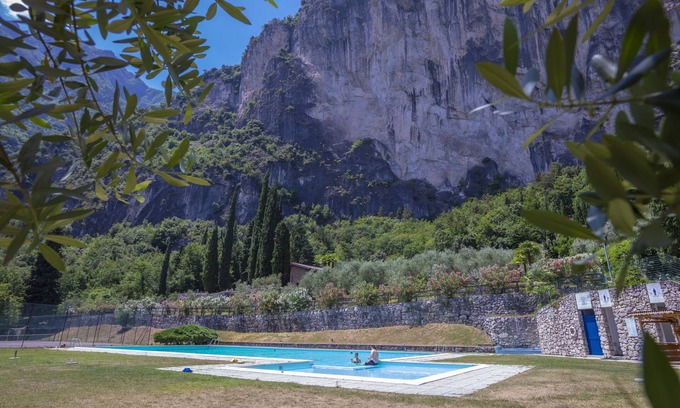 Does the Riva del Garda apartment have a swimming pool?