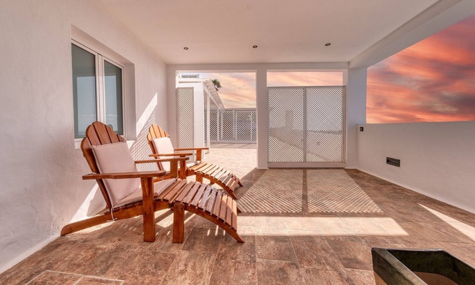 Discover the charm and peace in our Suite 7, located on the ground floor of Casa Serena. Access this spacious suite through a cosy semi-private patio that offers stunning sea views, perfect for enjoying magical sunsets from your personal lounger. With a window that frames the natural landscape with the ocean as a backdrop, this suite becomes a unique and serene refuge.The suite, with a generous surface area of 32 m², includes a luxurious 14 m² bathroom, equipped with a rain effect shower and a freestanding bathtub, double washbasin, and an independent dressing room, all complemented by sophisticated Armani taps. The 10 m² semi-private patio offers a tranquil space with sun loungers and a seating area, ideal for relaxing in privacy. Within the suite, you will find a king-size bed, a rest area, a 55-inch Smart TV, Wi-Fi and a safe for your comfort and security. It also has a minibar to refresh your favourite drinks.Located in the charming village of Macher, our Suite number 7 is ideal for those seeking an experience of tranquillity and elegance in a rural setting, without losing proximity to the main attractions of the island. At Casa Serena, our elegant adults-only guesthouse, guests can enjoy a solarium with a heated pool during the winter months, perfect for relaxing at any time of the year.Start the day in our warm breakfast room on the ground floor, where you will delight in inspiring sea views. From 8:00 to 10:00, we serve a breakfast that highlights the authentic flavours of the Canary Islands, with fresh and local products: cheeses from Lanzarote, seasonal fruits, salmon from Uga, artisan bread, ham, yoghurt, pastries, cereals and eggs prepared to your liking.Casa Serena is not just accommodation, but a luxurious retreat that invites you to disconnect and enjoy natural beauty, while surrounding yourself with all the modern comforts you could desire.