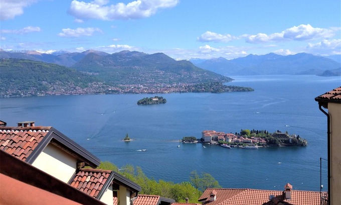 Detached house with thelake view and view of the Borromean islands in Stresa. The structure is on two floors, it has an internal parking and free wifi. It consists of a living room with sofa bed and a TV, a kitchen with a dishwasher. On the ground floor you then enter the first bedroom with a double bed and a bathroom with a shower. An internal staircase leads to the second bedroom with a double bed and a bunk bed. This room has a second bathroom with a shower. From the second floor you reach the terrace with a spectacular view of the Borromean islands, the lake and the mountains.