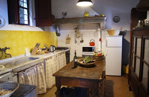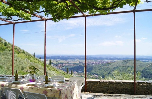 Restored farmhouse with dependance in the hills overlooking the Arno Valley. Surrounded by olive groves and lush woods, this house allows for a relaxing holiday away from the hustle, immersed in an idyllic landscape. The strategic location of the house allows those who love art and culture to easily access some of the most famous cities and towns in Tuscany: Pisa with its Piazza dei Miracoli, Lucca and its ancient city walls, Volterra and its Etruscan ruins. Even Florence can easily be reached in just an hour's drive. For those who want to spend a day on the beach, the Versilia coast awaits. In front of the house there is a beautiful terrace equipped with barbecue for outdoor dining, and on one side, on an overhanging terrace, is the swimming pool (11x3, 1.40 m deep) (17/5-27/10). It is possible to request when booking a baby bed, maid service and the use of the Wi-Fi connection, the latter two are to be paid for on location. Central heating. Parking in the property.