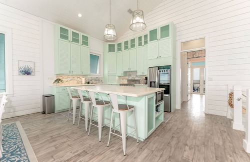 Casa Sirena is perfect for multiple families and can sleep up to 12 with two king bedrooms, two queen bedrooms and a kid/teen loft including a built-in twin bunkbed and a queen-sized couch/futon with a FIRM mattress (no springs in your back!). Bathrooms are plentiful with three full and two half baths.