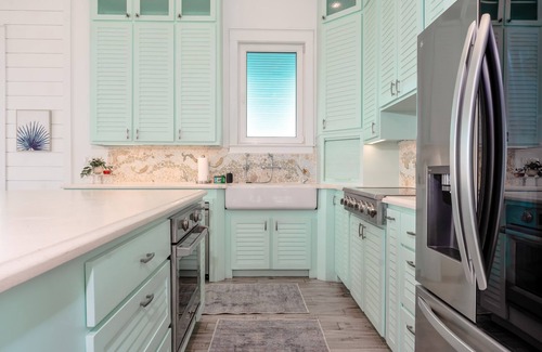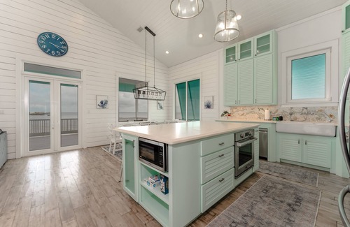 With over 3000 square feet over three stories and breathtaking views from both bay-view balconies, you won't want to leave the house! The home boasts airy, high ceilings on every floor, beautiful custom coastal lighting, whimsical décor, uber-comfortable oversized furniture, and new mattresses in every bedroom – just to name just a few of the many updates.