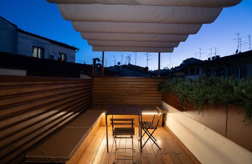 Casa Sofia Santo Spirito Apartment is a luxurious and romantic apartment of 90 square meters in the heart of Santo Spirito, the most authentic of the historic districts of Florence, with a magnificent terrace on the rooftops of the city. It has a great location to easily walk to the main monuments: only 10-15 minutes to get to the Uffizi Gallery, Ponte Vecchio or the Duomo. There are numerous bars, restaurants and shops nearby.