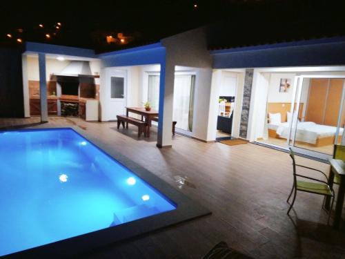 BathroomGuest bathroom, Hairdryer, Towels, Toilet paper, Private bathroom, Body soap, Shower, ToiletMedia & TechnologyFlat-screen TV, Satellite channels, TV, Streaming service (like Netflix)GeneralMosquito net, Heating, Private entrance, Trash cans, Iron, Fire extinguisher, Tile/Marble floor, Air conditioningOutdoorsBalcony, Barbecue, Patio, Private pool, TerraceKitchenDishwasher, Kitchenware, Kitchen, Wine glasses, Microwave, Washing machine, Dining table, Refrigerator, Toaster, Oven, Electric kettle, Stovetop, Coffee machineLiving AreaFireplace, Sofa, DeskViewGarden view, View, Pool view, Quiet street view, Sea viewBedroomLinens, Childrens' cribsAccessibilityEntire unit located on ground floorBuilding CharacteristicsDetachedRoom AmenitiesDrying rack for clothing, Clothes rack, Socket near the bed, Sofa bedPool and SpaPool with a view, Infinity Pool, Pool towelsFood & DrinkFruit, Wine/ChampagneSafety featuresAir purifiersCleanliness & disinfectionHand sanitizer |