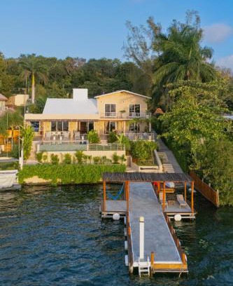 This beachfront property offers access to a terrace and free private parking. With free Wifi, this 4-bedroom vacation home features a flat-screen TV, a washing machine, and a fully equipped kitchen with an oven and microwave. Guests can take in the views of the lake from the balcony, which also has outdoor furniture. The vacation home offers bed linen, towels, and laundry service. You can play table tennis at Casa Sol y Luna - Beautiful sunrises and infinity pool. Guests can swim in the infinity pool, relax in the garden, or go snorkeling. Chetumal International Airport is 20 miles from the property.
