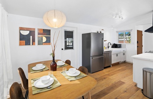 New modern open kitchen with dedicated island bar. 3 stunning bedrooms, 2 new bathrooms, a 60" Samsung smart TV in the living room, open backyard and central A/C.