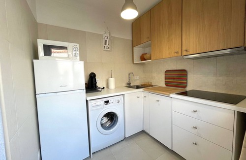The apartment features two comfortable bedrooms, including a king-size bed and a bunk bed, ensuring a good night's sleep for up to four guests. Two private bathrooms with showers provide convenience and privacy for all occupants. The fully equipped independent kitchen is a highlight, complete with modern appliances including a dishwasher, fridge, freezer, microwave, coffee machine, and all the kitchenware you'll need to prepare delicious meals.
