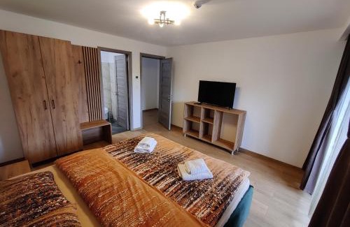 Offering inner courtyard views, Casa Toplita in Topliţa offers accommodations, a garden, and a shared lounge. This 3-star apartment offers a shared kitchen and luggage storage space. Free Wifi is available and private parking can be arranged at an extra charge. All units comprise a seating area and a fully equipped kitchen with various cooking facilities, including a microwave, a fridge, a stovetop, and kitchenware. The units are equipped with a wardrobe and a flat-screen TV, and certain units at the apartment complex have a balcony. At the apartment complex, each unit comes with bed linen and towels. During warmer months, you can make use of the barbecue facilities and eat on the private terrace. During the colder months, guests can enjoy winter sports in the surrounding area. With an outdoor fireplace and a picnic area, this apartment offers plenty of opportunities to chill out. Târgu Mureș Transylvania Airport is 73 miles away.
