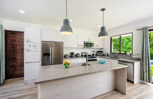 Casa Tuga is a spacious 3-level home with 4 bedrooms, each with A/C and a private bathroom. The home features a private pool with a shallow kid-friendly area, a second-floor open deck ideal for yoga or lounging, and a rooftop terrace with relaxing breezes and views. Located just a short walk from the beach and local restaurants, it’s perfect for families or groups. Pet-friendly, bright, and welcoming—your perfect beach base.