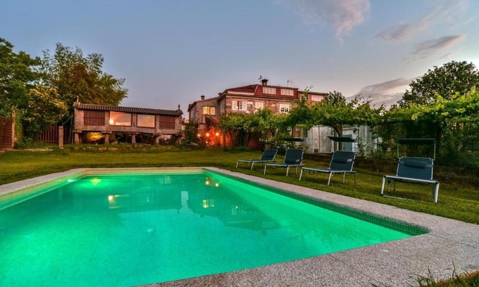 Casa Vilar is located in Sanxenxo, just 15 miles from Cortegada Island and 25 miles from Pontevedra Railway Station. With garden views, this accommodation offers a balcony and a swimming pool. The vacation home features a picnic area, a 24-hour front desk, and free Wifi is available throughout the property. This vacation home includes 6 bedrooms, a living room and a flat-screen TV, an equipped kitchen with a dining area, and 3 bathrooms with a walk-in shower and a washing machine. Towels and bed linen are offered in the vacation home. There's also a seating area and a fireplace. Sightseeing tours are available in the area. Guests can relax in the garden at the property. Pontevedra Town Hall is 22 miles from the vacation home, while Teatro Principal is 22 miles from the property. Vigo Airport is 42 miles away.