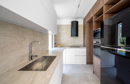 Inside the villa , you'll find four cozy bedrooms, each with a comfy double bed, perfect for a good night's sleep. There are also three bathrooms with showers, so no waiting in line to freshen up! Our kitchen is fully stocked with everything you need to cook up tasty meals during your stay. Outside, get ready to relax and dine al fresco in our lovely outdoor dining area. With comfy furniture, it's the ideal spot for enjoying meals together or just lounging in the sunshine. Also the villa includes an outdoor kitchen and a gas barbeque grill, so you can cook outside and enjoy your meals with your loved ones. Last but not least, you can take a refreshing dive at the private swimming pool of the property to cool of on hot days or lounge by the poolside with a cold drink in hand.Our house is perfect for families or couples who will respect both the property and the neighbors, as the villa is situated in a peaceful neighborhood. Groups looking to party are not welcome. In case you did not respect the rules you will be escorted out of the house without a refund.