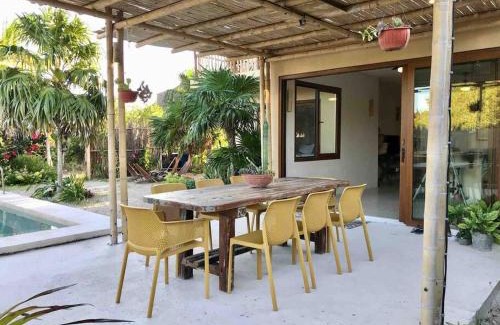 Featuring a garden, CasaCalma Great for families! offers accommodations in Holbox Island. With pool views, this accommodation features a terrace and a swimming pool. Free Wifi is available throughout the property and Playa Holbox is a few steps away. This air-conditioned 2-bedroom vacation home comes with a seating area, a flat-screen TV, and a fully equipped kitchen with an oven. Towels and bed linen are available in the vacation home. The property has an outdoor dining area. A bicycle rental service is available at the vacation home. Punta Coco is a 8-minute walk from CasaCalma Great for families!.