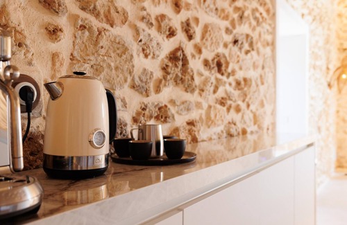 Completely renovated, wonderful Mallorcan house located in the town of Santa María del Camí, a few kilometers from Palma city. The house offers the best comfort accompanied by a rustic and modern atmosphere. Casal Santa María offers guests a total of six double rooms with a double bed, a total of six en-suite bathrooms and a guest toilet. On the ground floor we find a large fully equipped kitchen, a large dining area, a large living room with comfortable sofas next to the fireplace, television, etc. On the upper floor we find the bedrooms and an area with the house's old kitchen and a dining area with table and chairs. The decoration is carefully adapted to maintain the style of the time in which it was built, and combines with the modern elements of today.