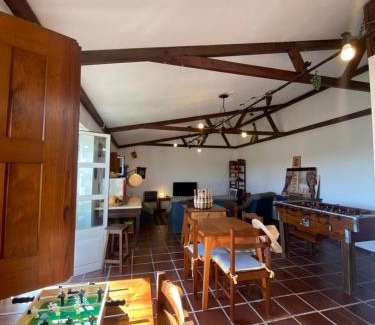 Casal Serrano Charme e Tranquilidade is a recently renovated vacation home in Reguengo Grande where guests can make the most of its rooftop pool, garden, and barbecue facilities. This property offers access to a balcony, free private parking, and free Wifi. The accommodation features private check-in and check-out and bicycle parking for guests. Offering a terrace and mountain views, the spacious vacation home includes 4 bedrooms, 3 living rooms, satellite flat-screen TV, an equipped kitchen, and 4 bathrooms with a walk-in shower and a bidet. The parquet floors, fireplace, and peaceful vibe add to the ambience of the room. The property has an outdoor dining area. For guests with children, the vacation home offers both an indoor and outdoor play area. The vacation home has a picnic area where you can spend the day outdoors. Obidos Castle is 8.5 miles from Casal Serrano Charme e Tranquilidade, while Lourinhã Museum is 8.7 miles away. Humberto Delgado Airport is 43 miles from the property.