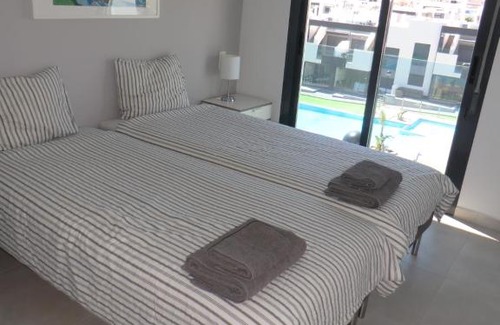 Casas Holiday - Los Altos provides a solarium and air-conditioned accommodations in Torrevieja, 1.6 miles from Cala Ferris Beach. There's a private entrance at the vacation home for the convenience of those who stay. There's a year-round outdoor pool and guests can make use of free Wifi, free private parking, and an electric vehicle charging station. The vacation home provides guests with a terrace, pool views, a seating area, satellite flat-screen TV, a fully equipped kitchen with a dishwasher and an oven, and a private bathroom with shower and a hair dryer. A microwave, a toaster, and fridge are also provided, as well as a coffee machine and a kettle. At the vacation home, all units are fitted with bed linen and towels. Guests at Casas Holiday - Los Altos will be able to enjoy activities in and around Torrevieja, like fishing. Kids pool is also available at the accommodation, while guests can also relax in the garden. Las Colinas Golf Course is 4.9 miles from Casas Holiday - Los Altos, while Villamartin Plaza is 2.9 miles from the property. Region de Murcia International Airport is 31 miles away, and the property offers a paid airport shuttle service.