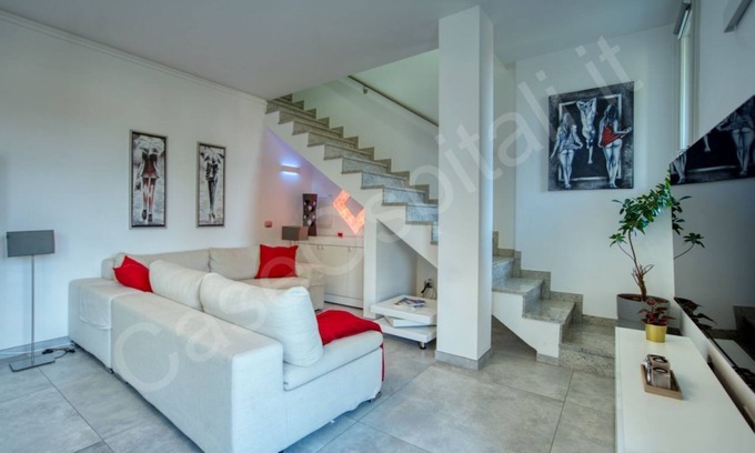 Casa La Perla is a high class residence in Cernusco sul Naviglio, ideal for a couple or a family of three. In the elegant building on the 2nd floor with elevator, a bright living room welcomes you for your moments of relaxation. The modern kitchen is fully equipped. A comfortable staircase takes you to the upper floor, in the large double bedroom area with a desk for remote work and a third bed. Two bathrooms, with shower and tub and two terraces complete the offer.