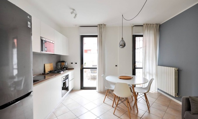 La Casa di Cri&Eli is a modern three-room apartment on the 1st floor in a quiet area surrounded by greenery: the Rubattino area. Just a 15-minute walk from Lambrate Station, the apartment is a 5-minute drive from the Cancer Institute and 10 minutes from San Raffaele Hospital. Recently renovated and furnished, it has all the features that will make you appreciate it for a short or longer stay: a large living room with open kitchen and smart tv, a double bedroom with balcony and a twin bedroom that can be coupled with a 2 tv, a bathroom with shower and a large closet. The property is equipped with air conditioning, internet and all kitchen equipment. It is ideal accommodation for extended stays because it has all the comforts of home: washing machine, iron and ironing board, dishwasher, microwave, juicer, toaster, espresso machine, gas stove, vacuum cleaner, smart tv, wifi, air conditioning and heating, as well as bed linen and towels. In the terrace you can eat on the table under the umbrella, in an area well protected from privacy.